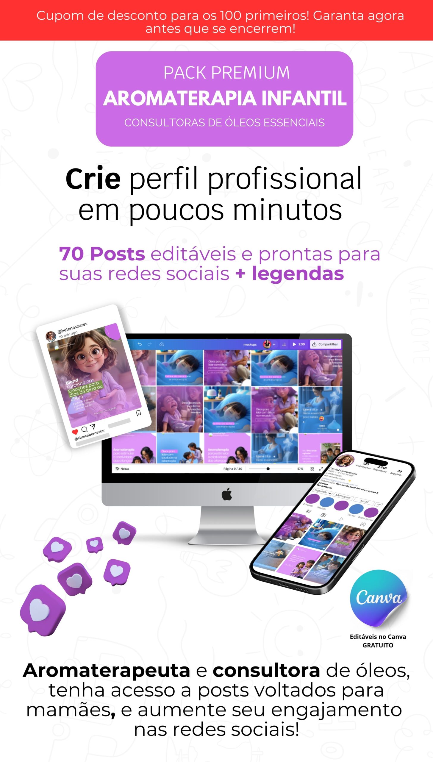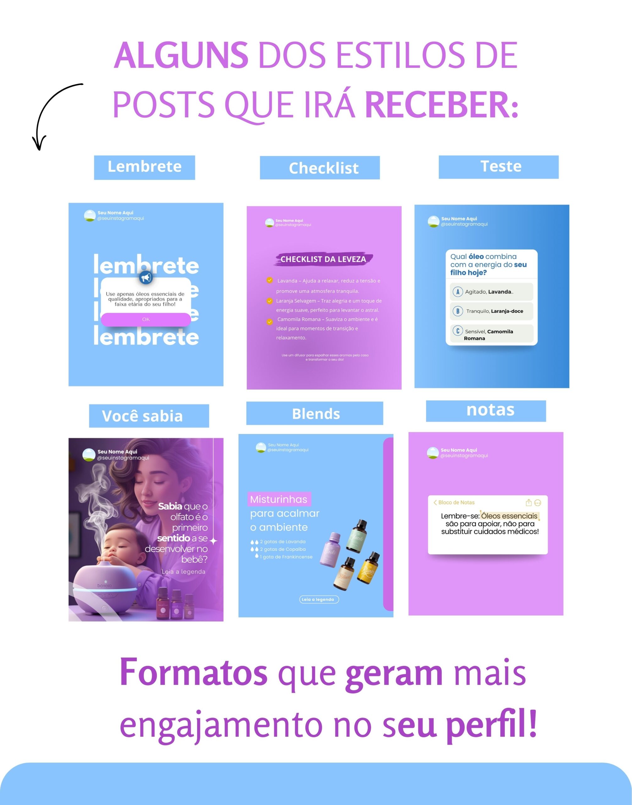 Todos os direitos reservados  – Pack Canva para Aromaterapia Infantil -MC Design Feed com arte 2025
