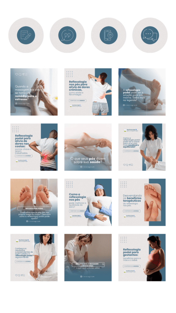 COM O PACK PARA REFLEXOLOGIA PODAL você terá 60 posts ATRAENTES para expôr seus produtos no instagram de forma PROFISSIONAL!